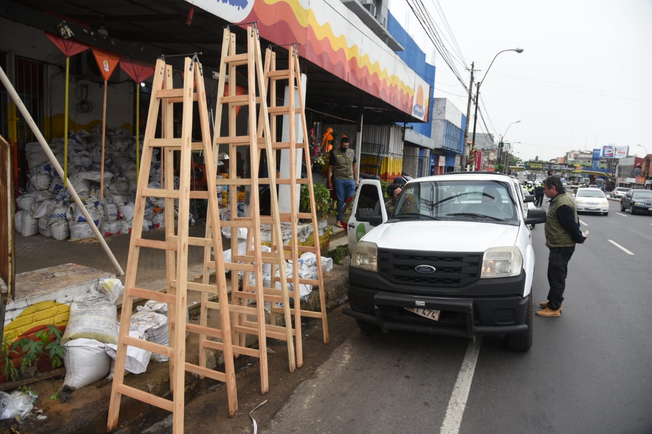 Esta mañana la policía Municipal de Asunción, en una visita sorpresiva notificó a propietarios de locales comerciales de la zona E. Ayala e / 22 de setiembre y Gral Bruguez, por el uso indebido de la acera.
