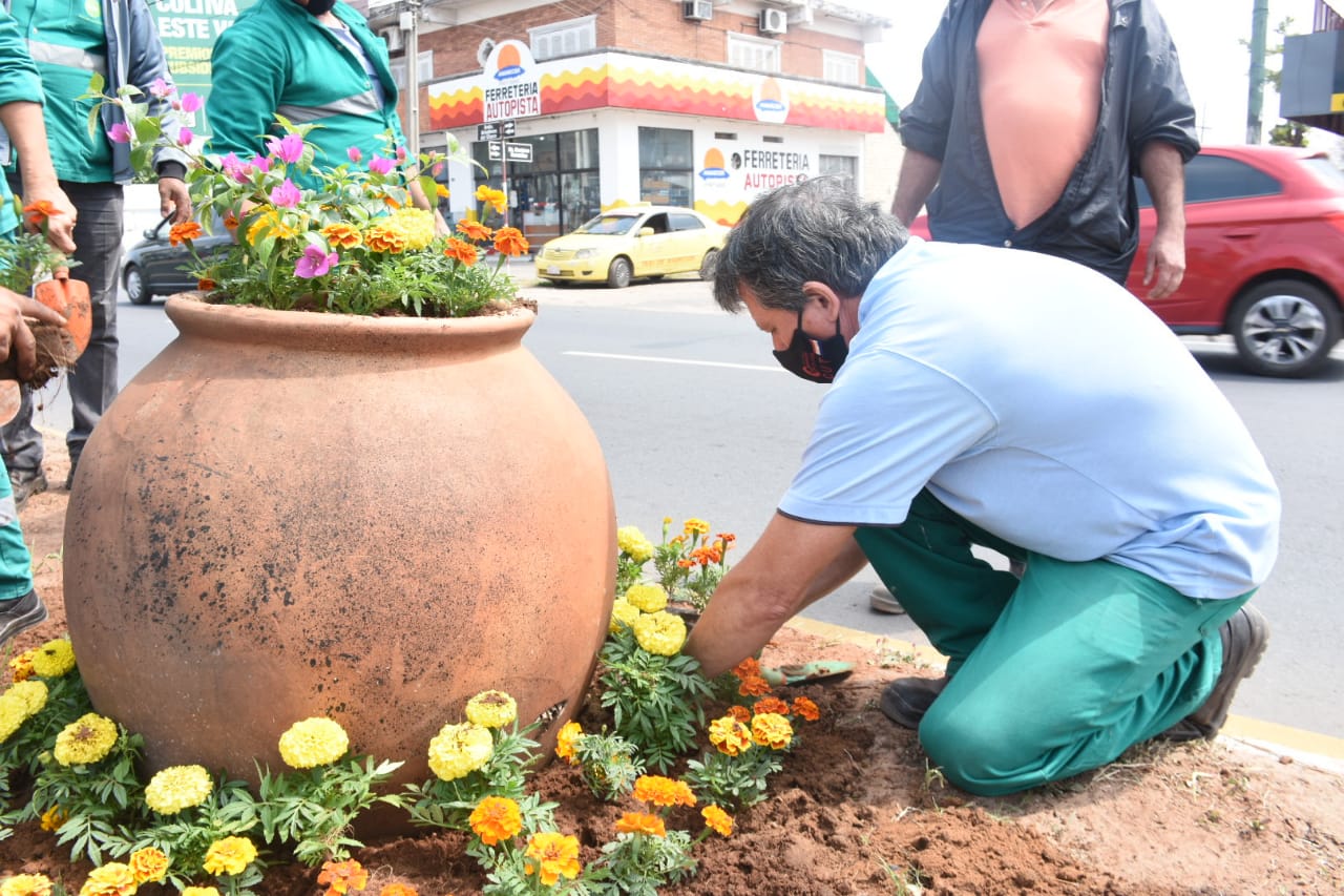 El trabajo consiste en la ornamentación y hermoseamiento con la colocación de más de 6.000 plantines en las avenidas, parques y espacios públicos de la capital.